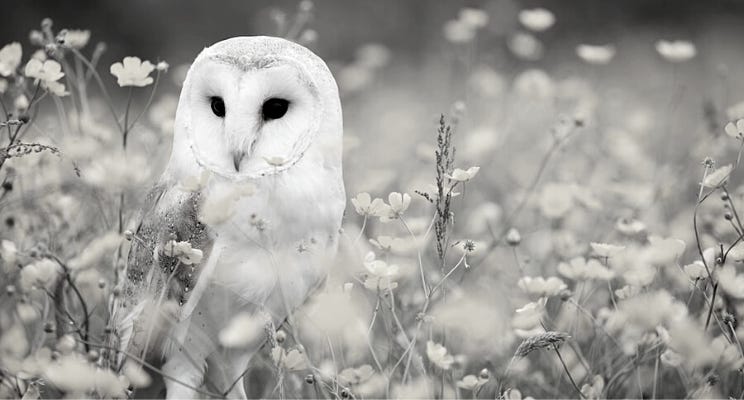 I remembered the advert for Communing with the Wild retreat had an owl. I enquired about securing a spot, but the retreat had sold out, and the only spots left were camping on the land. Now, I wasn't one to be accustomed to camping. I didn't even have a tent, and the thought of almost a week in a tent didn’t sound appealing. But if there was any way of going all in on an ecology-themed retreat, it would be to sleep in nature, so I booked my spot camping. A few days before we arrived, we received a message in the WhatsApp group chat from our first speaker, Pat McCabe, to begin thinking about the owl's symbology in advance. Followed by a photo sent the night before we arrived of an owl sitting in broad daylight on the roof of the main building. At this point, I'm thinking, what the f*ck? That's super weird.